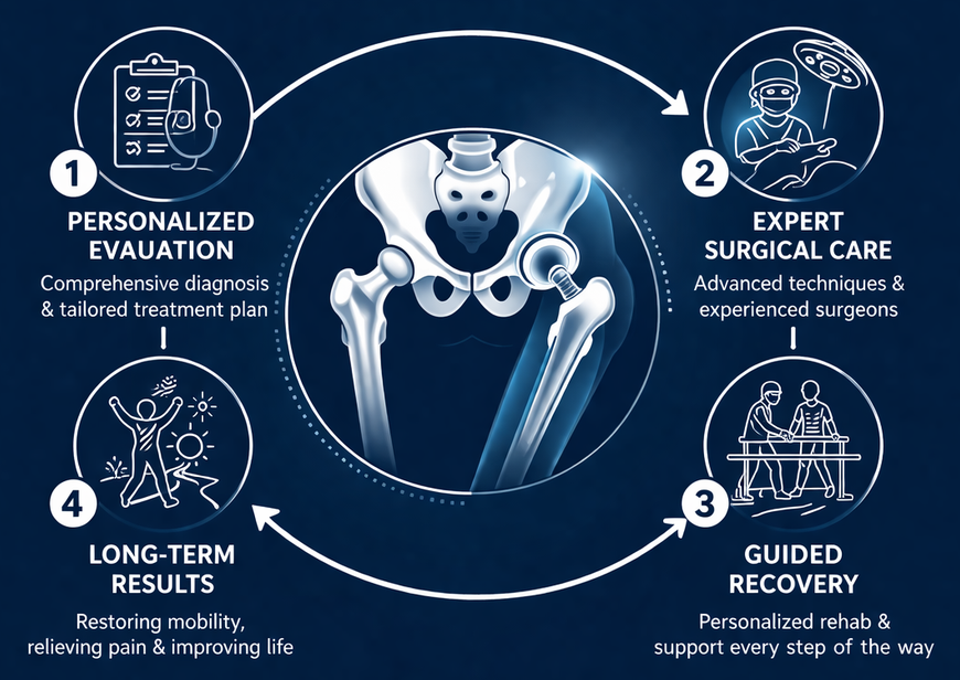 Hip pain can affect every part of daily life—walking, climbing stairs, getting up from a chair, sleeping comfortably, and enjoying routine activities. When medications, physiotherapy, and lifestyle changes no longer provide enough relief, hip replacement surgery can offer long-lasting pain relief and improved mobility.