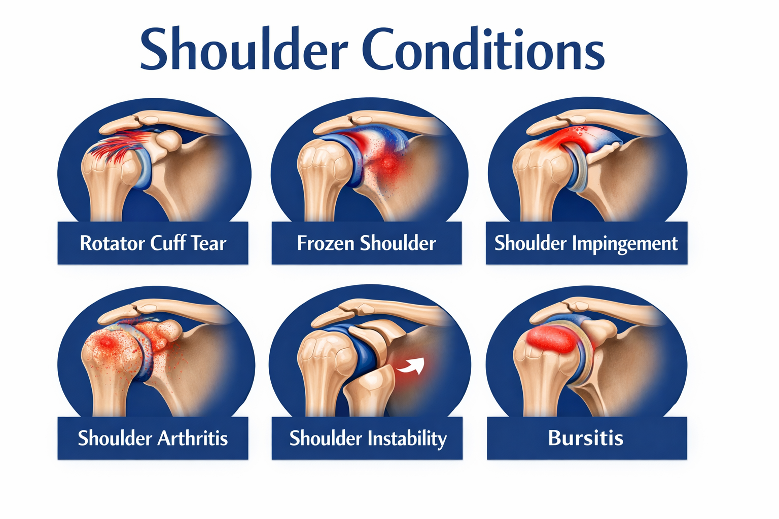 We specialize in diagnosing and treating a wide range of shoulder conditions: